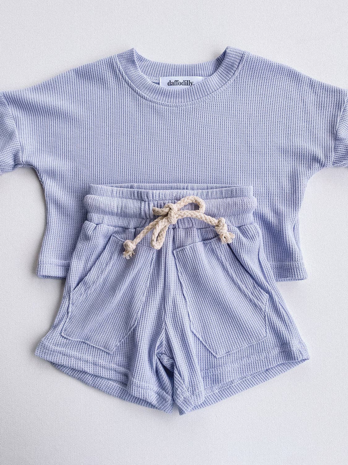 * bamboo waffle sets * top + pocketed shorts with a linen-style adjustable waist band * runs slightly big: if between sizes, size down, or get true to size for longer wear *95% bamboo, 5% spandex *