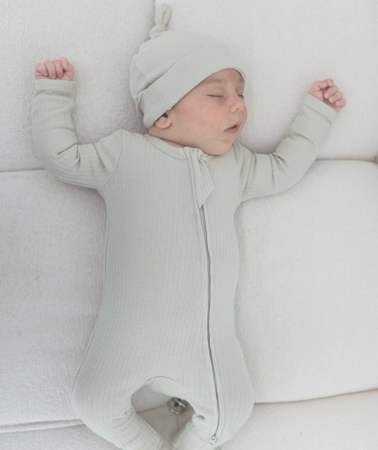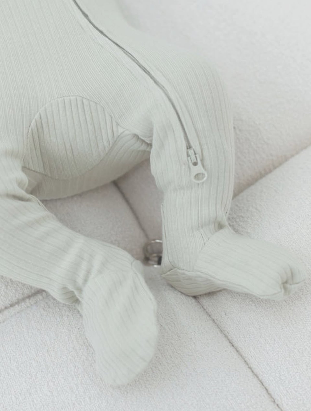 Designed for comfort and convenience, our zipper romper makes dressing and diaper changes effortless. Crafted from soft, ribbed organic cotton with a touch of stretch, it offers a cozy, breathable fit that's gentle on sensitive skin. Thoughtful details like fold-over mitts and feet provide extra warmth, while foot grips on larger sizes help little ones stay steady as they move.